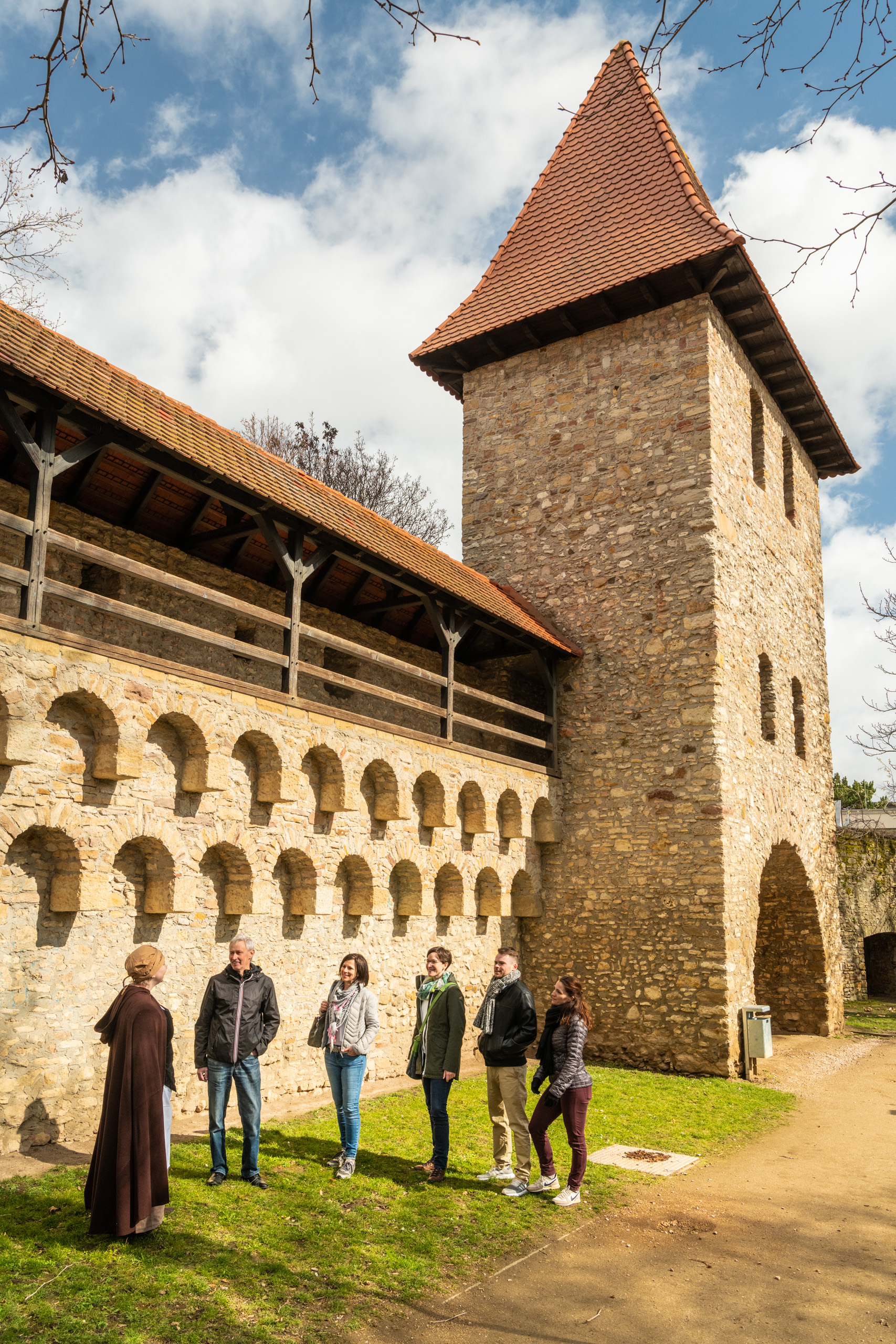 Eine schöne Spazierroute führt vom Rossmarkt durch die Torbögen zum Schloss. Im Innenhof laden die historischen Mauern und Bäume zum Entspannen ein. Durch idyllische Gassen geht es weiter zu Sehenswertem wie dem Renaissance-Rathaus mit Glockenspiel und dem Fischmarkt mit Undinen-Brunnen. Viel Flair versprühen auch die Überreste der Stadtmauer mit den restaurierten Türmen. Überall stehen Kunstwerke und Denkmäler, wie die Büste des Alzeyer Rebenzüchters Georg Scheu. Ihm sind Sorten wie Scheurebe oder Würzer zu verdanken.