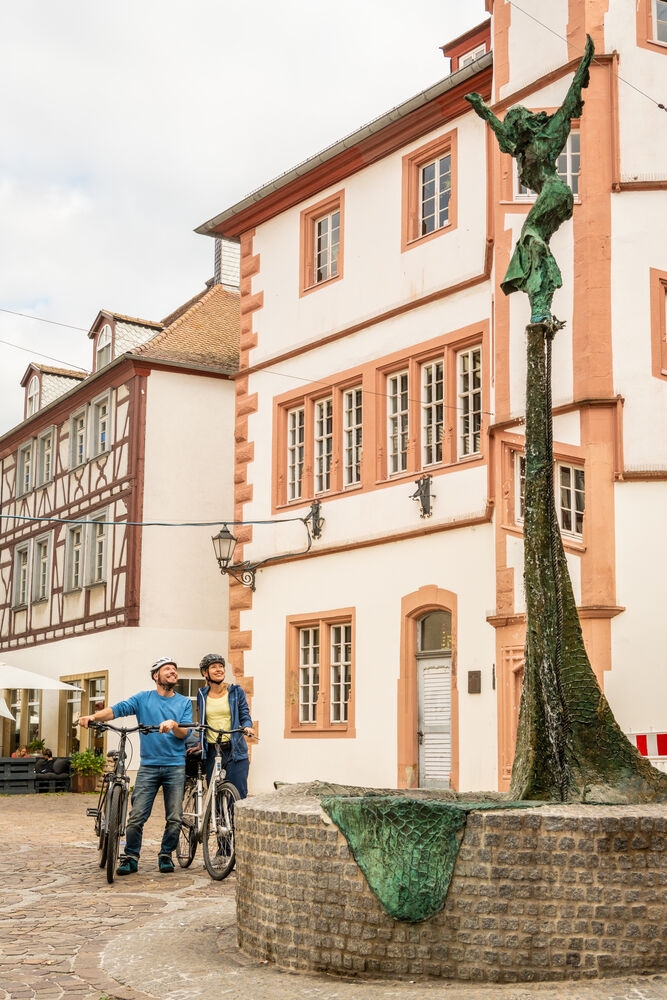 Das Herz der Stadt pulsiert am zentralen Rossmarkt, den hübsche Fachwerkhäuser schmücken. Den Platz prägt ein Brunnen, der Volker von Alzey aus dem Nibelungenlied gewidmet ist. Die Wasser-Fontänen überragt lebensgroß und reiterlos das Bronzepferd Max.
