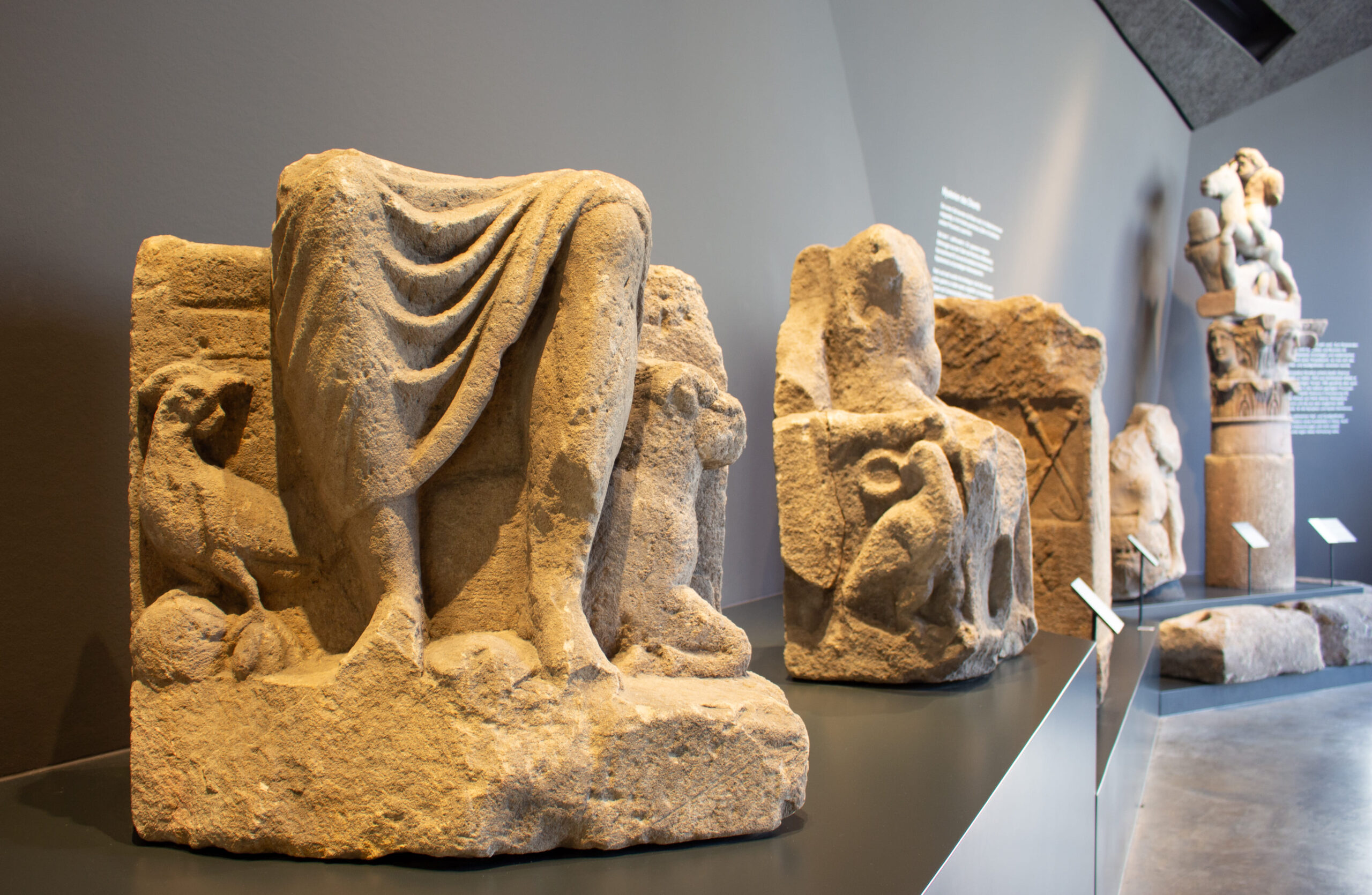Hingucker Steinhalle: Ihre skulpturale Architektur macht sie schon von außen zum Hingucker. Im Innern beheimatet sie eine beeindruckende Sammlung aus der Römer-Zeit wie Jupitersäulen und Viergöttersteine mit Venus, Minerva und Apollo.
