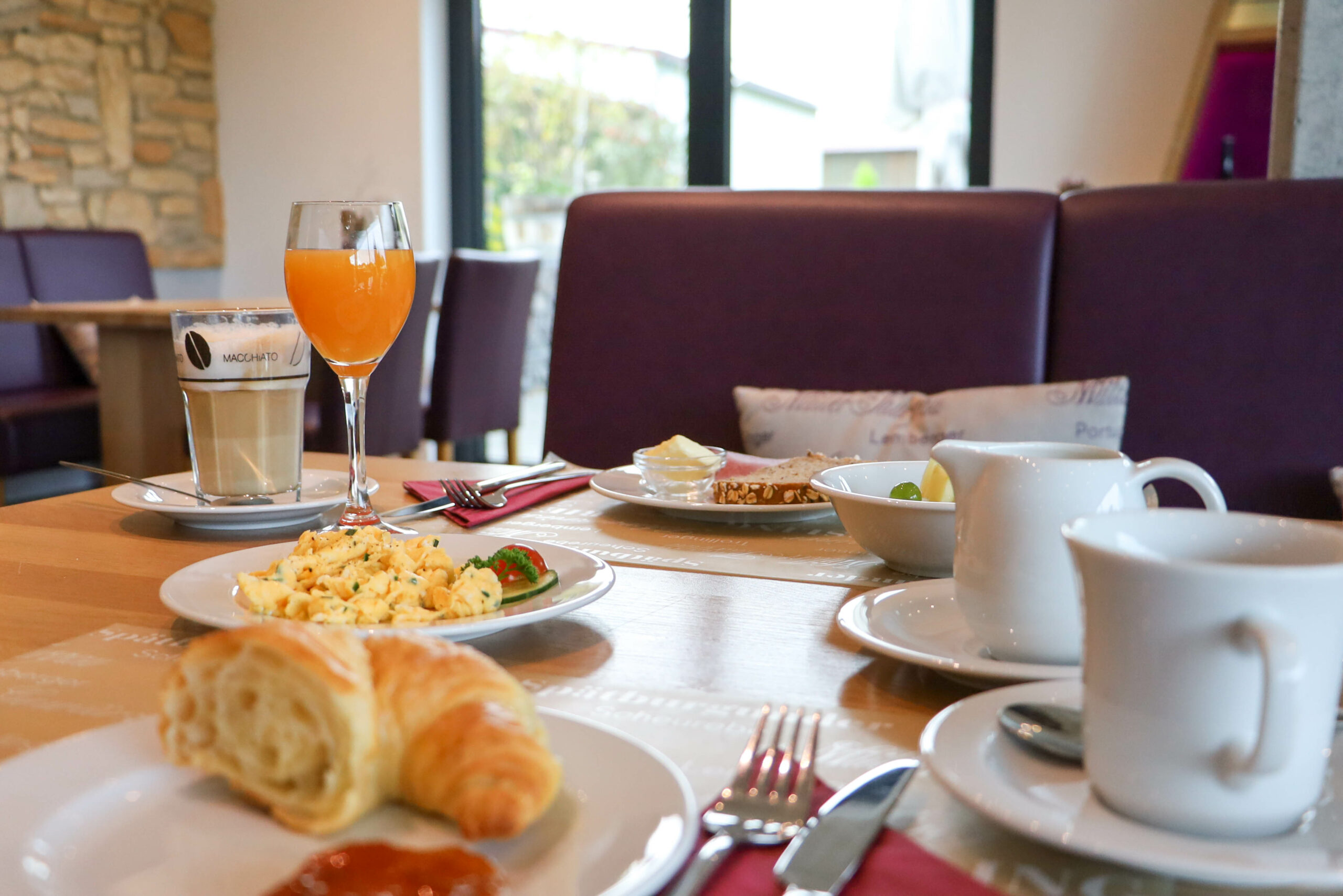 De Übernachtungsmöglichkeiten sind ein wichtiger Baustein für die Kundenbindung: Beim umfangreichen Frühstück mit Produkten aus der Region kommt man leicht ins Gespräch. Selbstgemachte Marmeladen aus heimischem Obst, Käse von einer Käserei im Hunsrück, frische Eier aus dem Nachbarort Wendelsheim und Kaffee aus der Mainzer Kaffee Rösterei Müller – die Gäste werden mit nachhaltigen Spezialitäten verwöhnt. Auch bei Geschäftsreisenden kommt der individuelle Service sehr gut an – sie nehmen gleich ein paar Flaschen Rheinhessen Wein als Souvenir mit. Ideal für Businessgäste sind auch die beliebten After-Work-Abende.