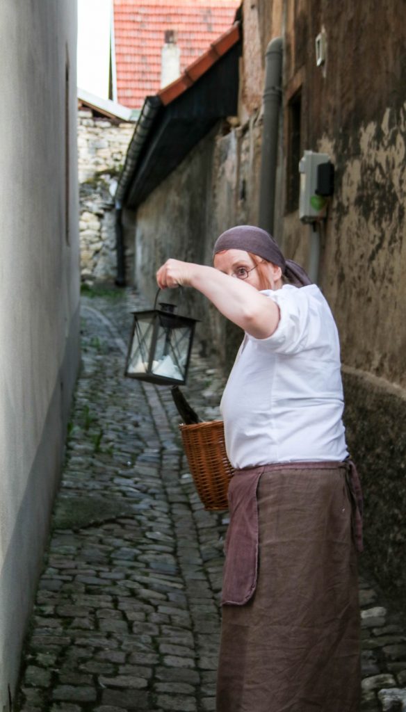 Wir durften Beate Hess alias Margret im Sommer begleiten. Die interaktive Nachtwächterführung findet aber eigentlich von November bis März an jedem ersten Samstag im Monat um 19 Uhr statt – dann, wenn es bereits schön dunkel ist. Neben den offenen Führungen könnt Ihr auch jederzeit eine private Führung für Gruppen buchen.