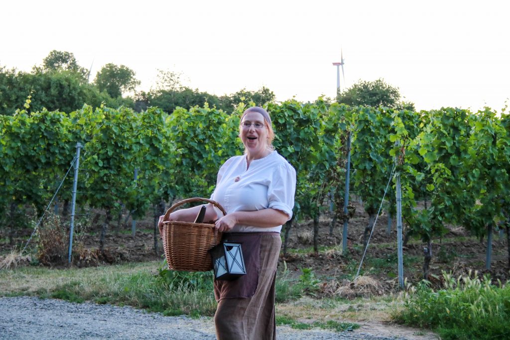 We beginnen te bewegen en Margret vertelt een verhaal uit haar leven. Ze is geboren in 1816. "Net als Rheinhessen zelf!" vertelt ze trots. Haar vader en grootvader waren toen al nachtwakers. Een verantwoordelijke baan, want als plaatsvervanger van de burgemeester moest hij elke nacht controleren of alle deuren op slot waren en alle branden geblust. Met 134 huizen in het dorp is dat een hele klus. Bovendien mocht er geen gespuis in het dorp rondlopen.